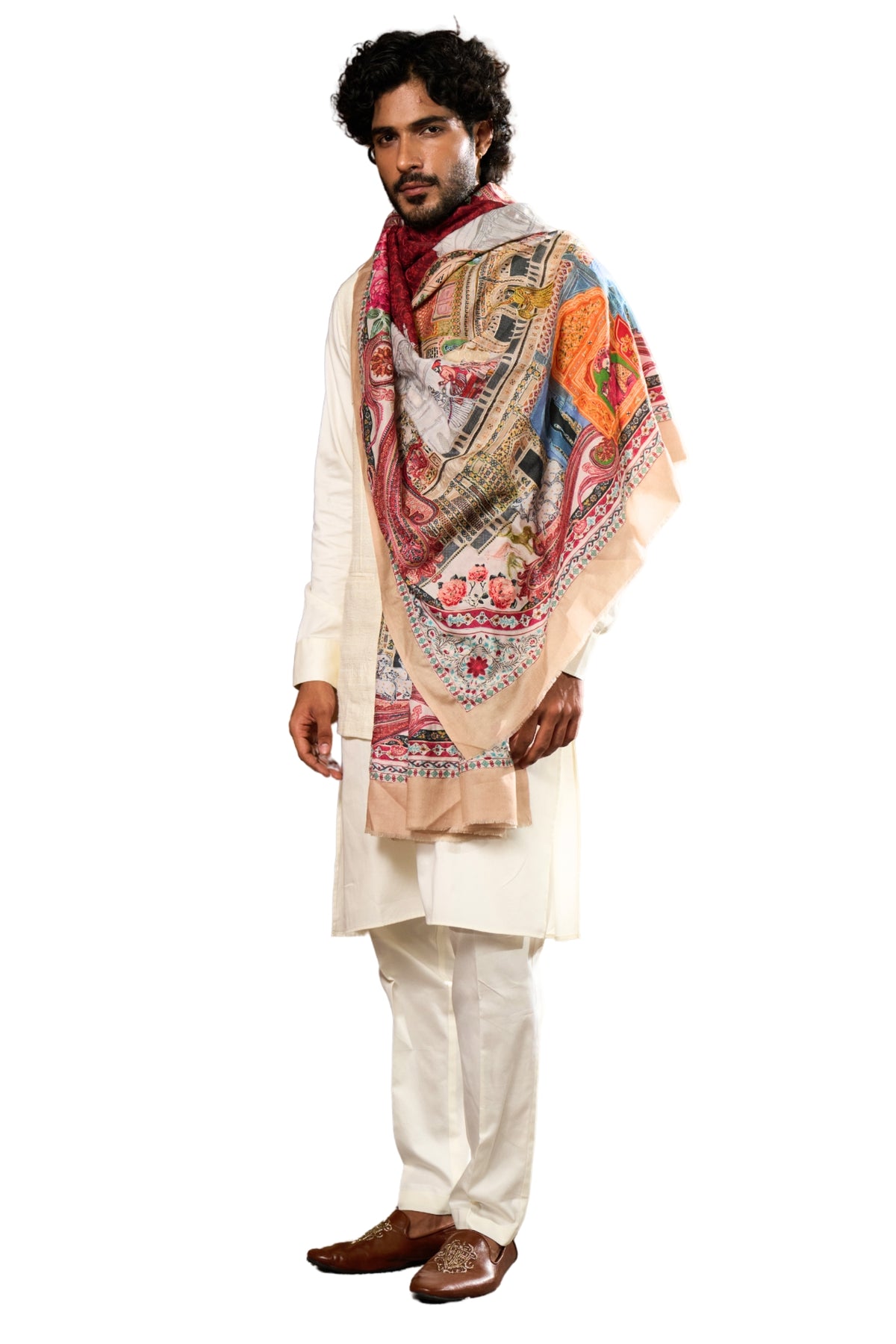 Taroob Fine Wool Maharaj Darbar Kalamkari Shawl