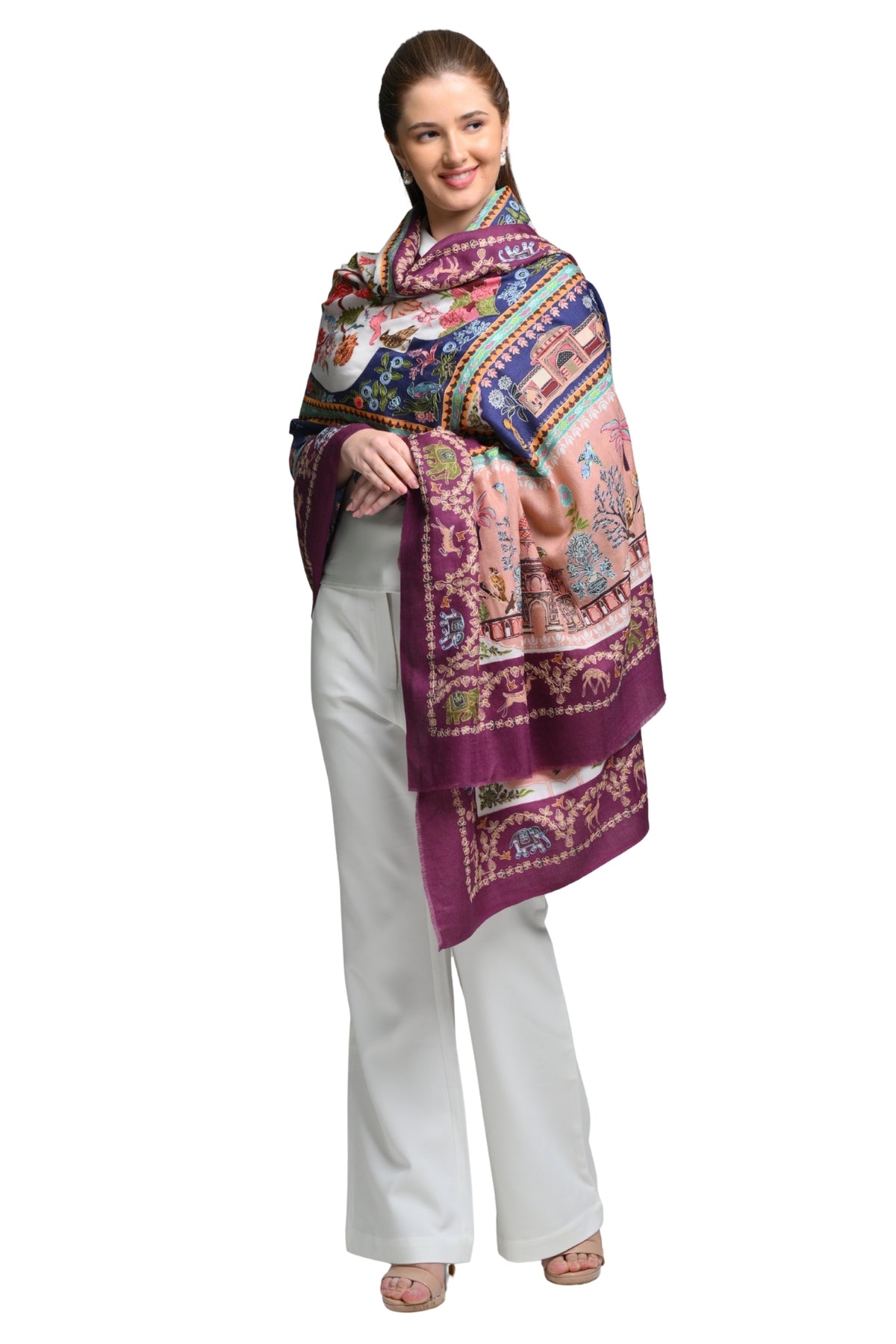 Taroob Shahi Darbar Wool Kalamkari Shawl