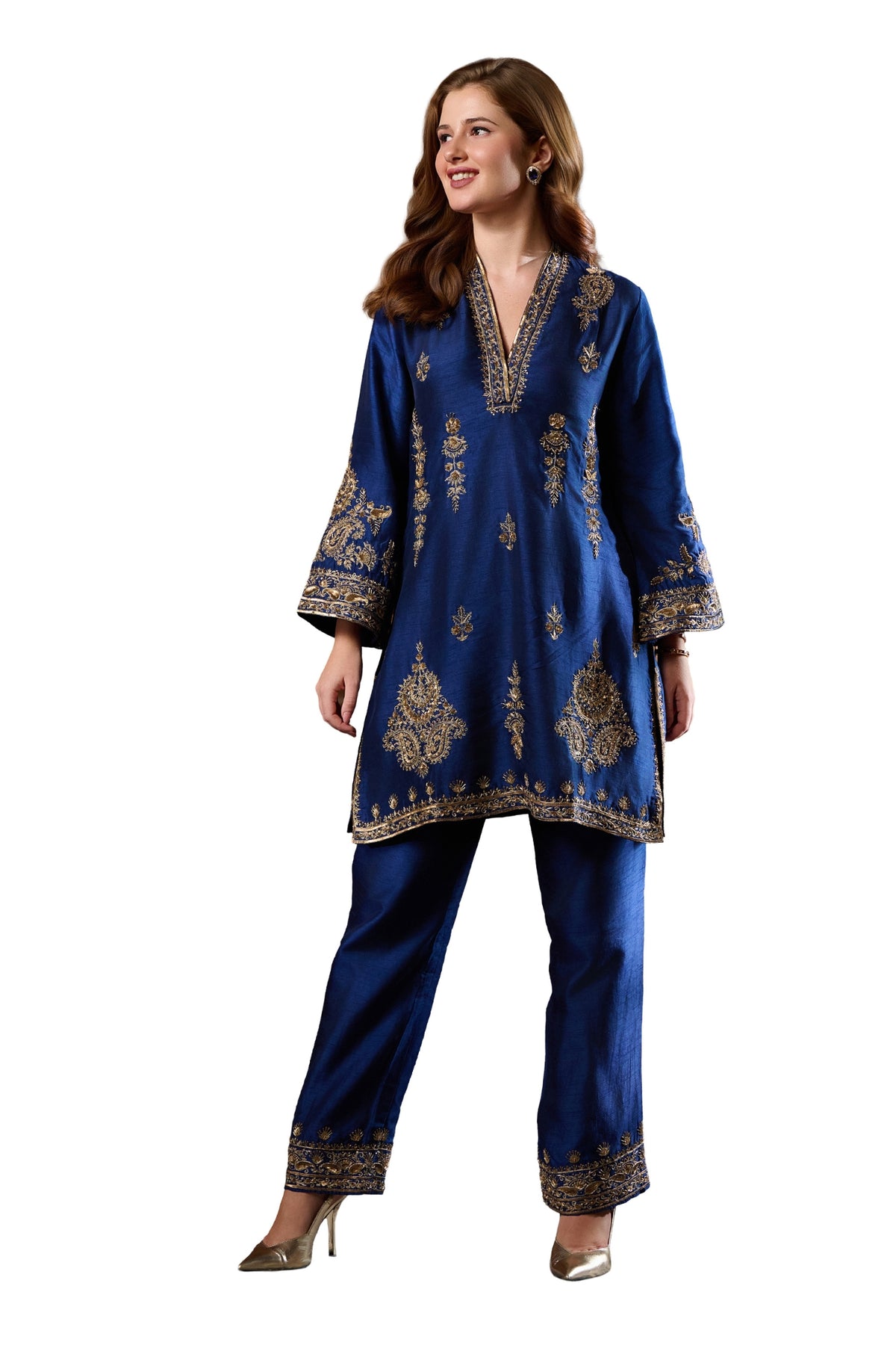 The Taroob Chand Bagh Hand Embellished Kurta Set features intricate handwork and regal detailing, making it a premium hand-embellished kurta set for festive occasions.