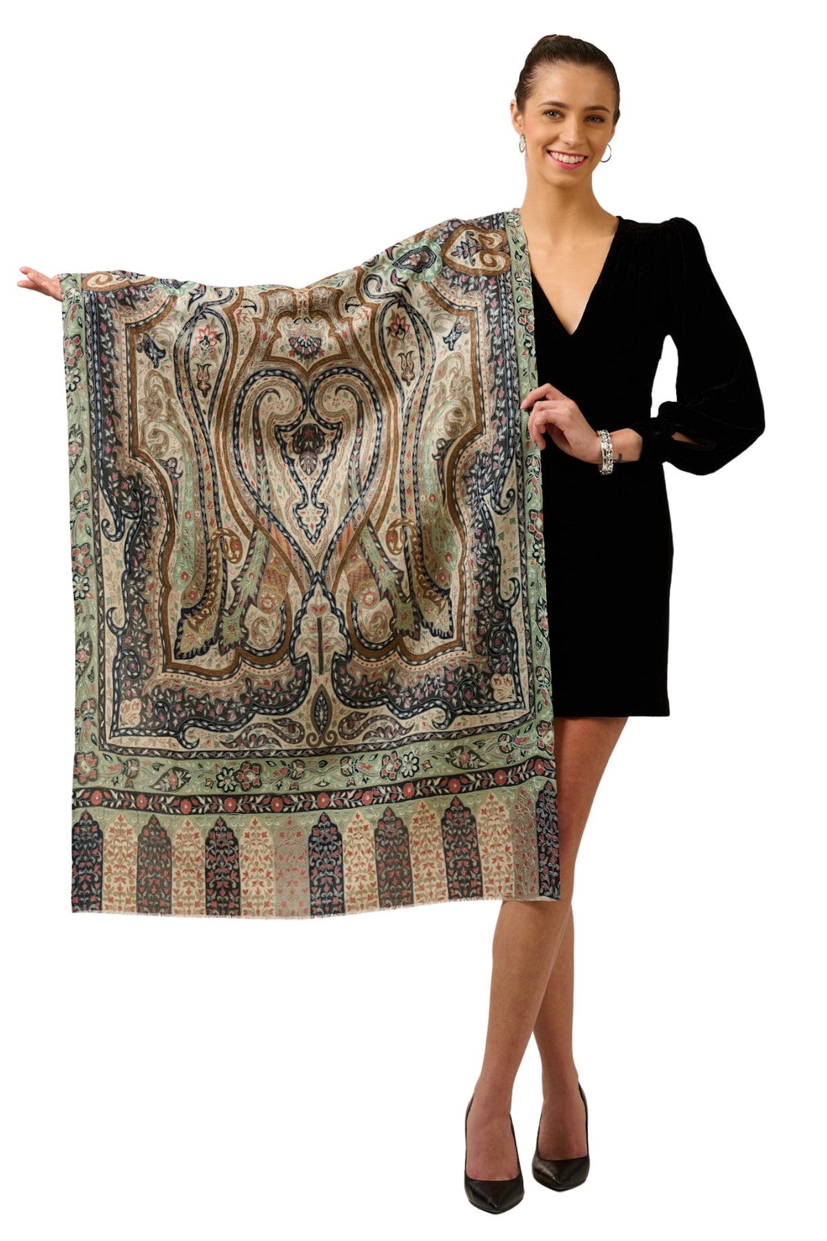 Taroob Splendid Paisley Wool Kalamkari Stole