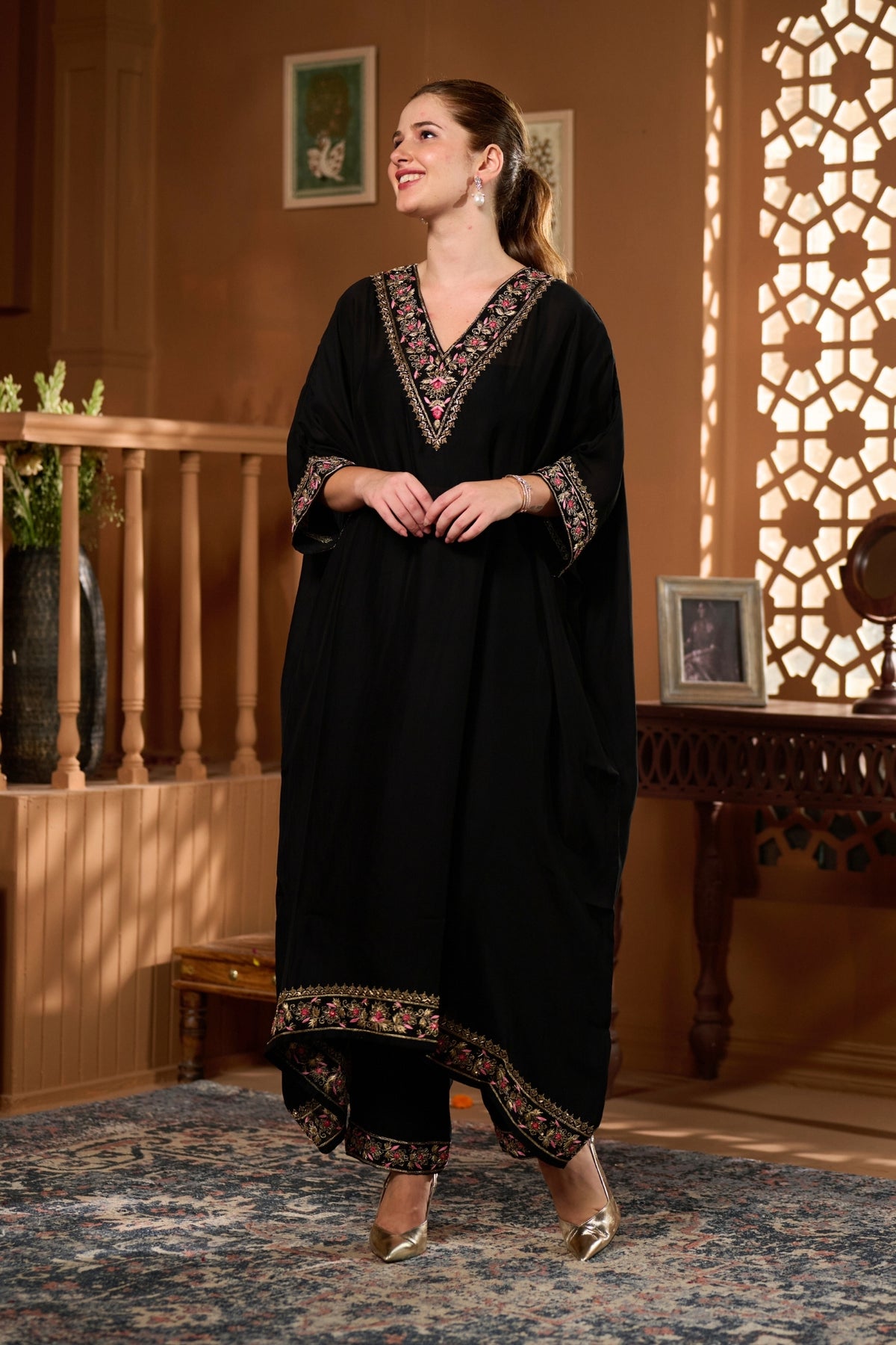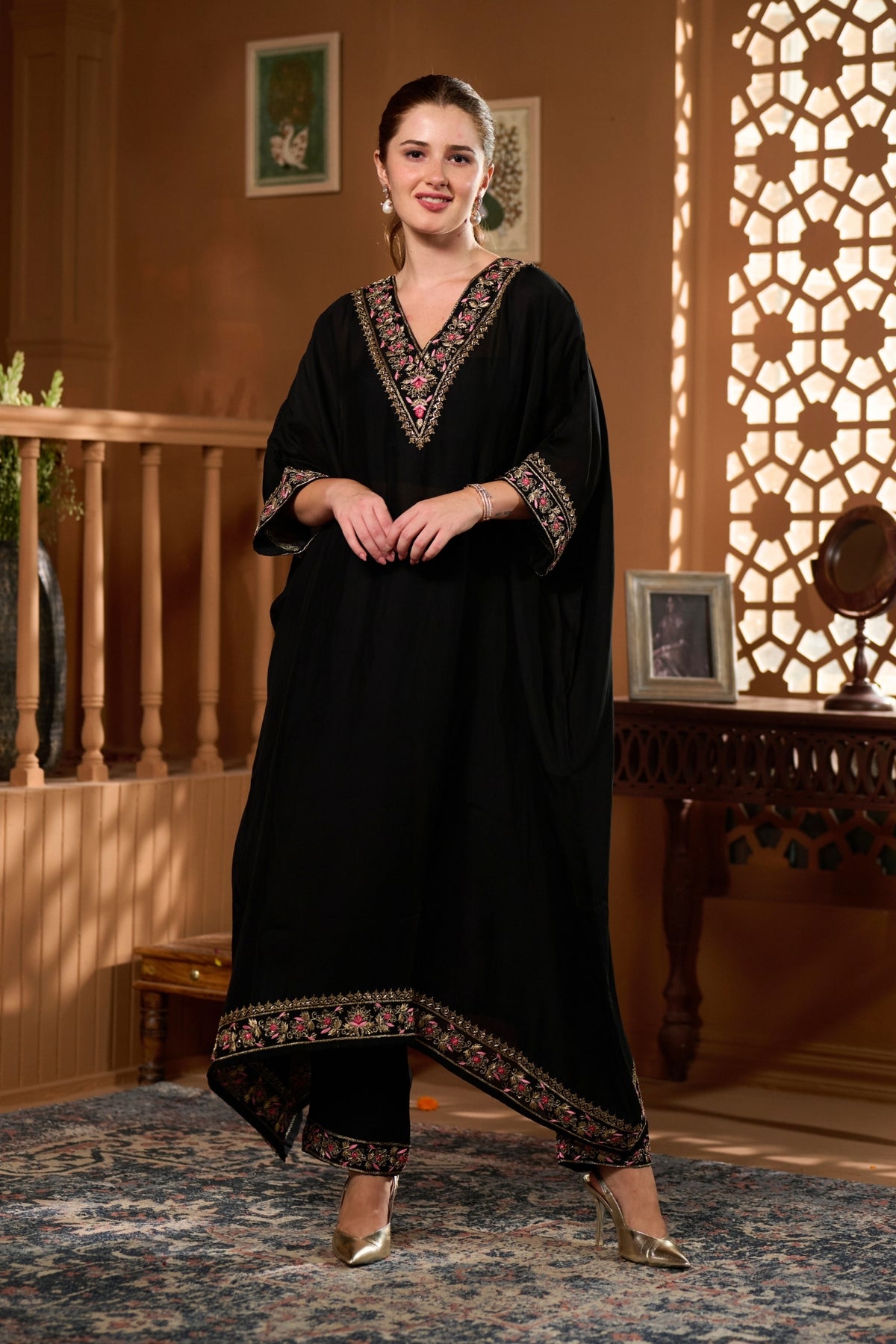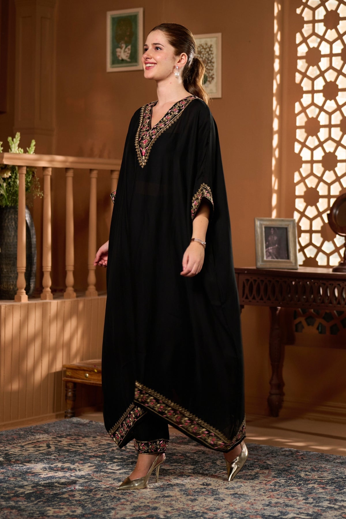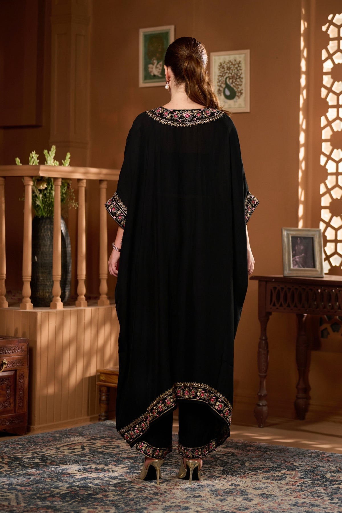 • The Taroob Hand Embellished Choga Set features luxurious handwork and regal design, making it a statement hand-embellished choga set for grand celebrations.